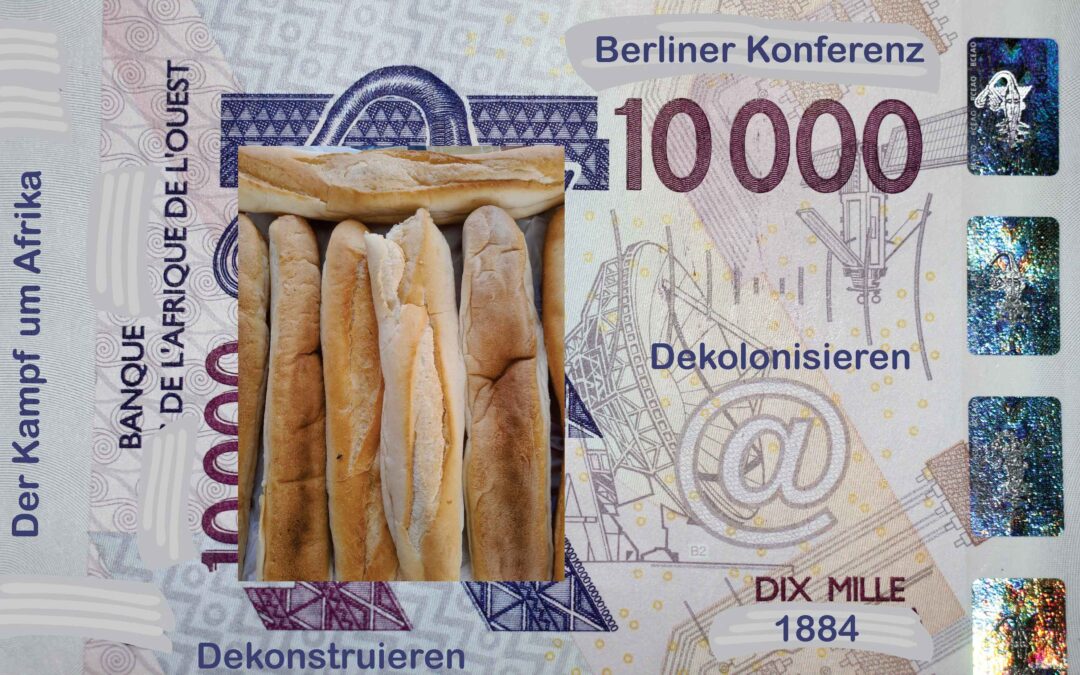 This project explores the Franc CFA as the legal tender in French West Africa and the efforts of a new political alliance to break away from French control. Between November 1884 and February 1885 the world powers met in Berlin Germany and divided Africa in what we know as “The scramble for Africa’ among its members awarding a very large portion to France. This gave France the opportunity to control the economy and resources of a large part of West Africa with the help of the Internation monetary fund (IMF). In the last few years, France has come under fire and met serious resistance after military coup in some of its former colonies. These acts which is aimed at renegotiating their own reality set the stage for me to reflect on this issue. I decided to reconstruct the Franc cfa as a way of responding to this notion of decolonize and deconstruct by using terms and pointers related to France and her allies like the international monetary fund and the Berlin conference. The bills were reconstructed with images that represents fragments of the everyday I collect as I journey through time and space.
